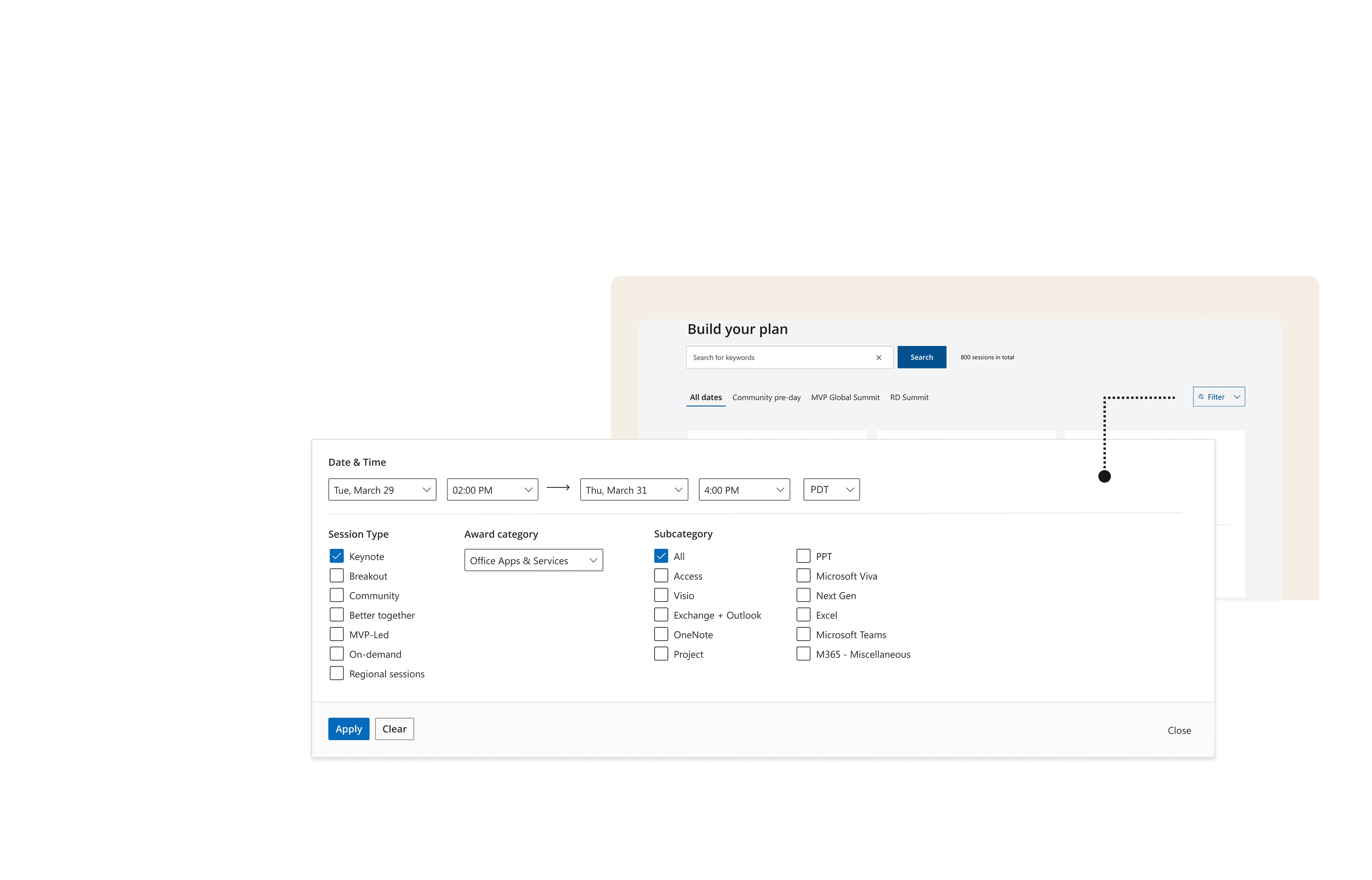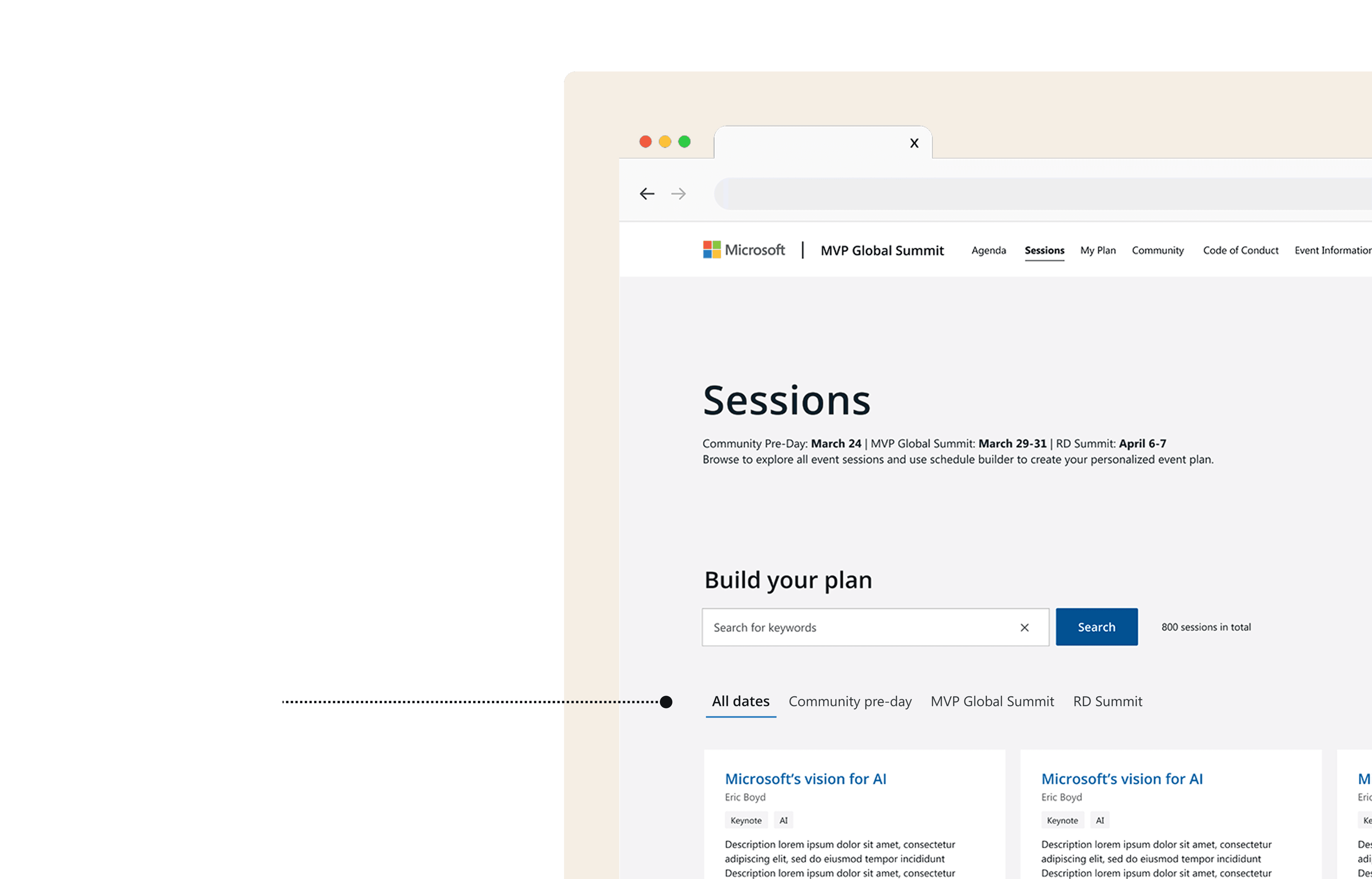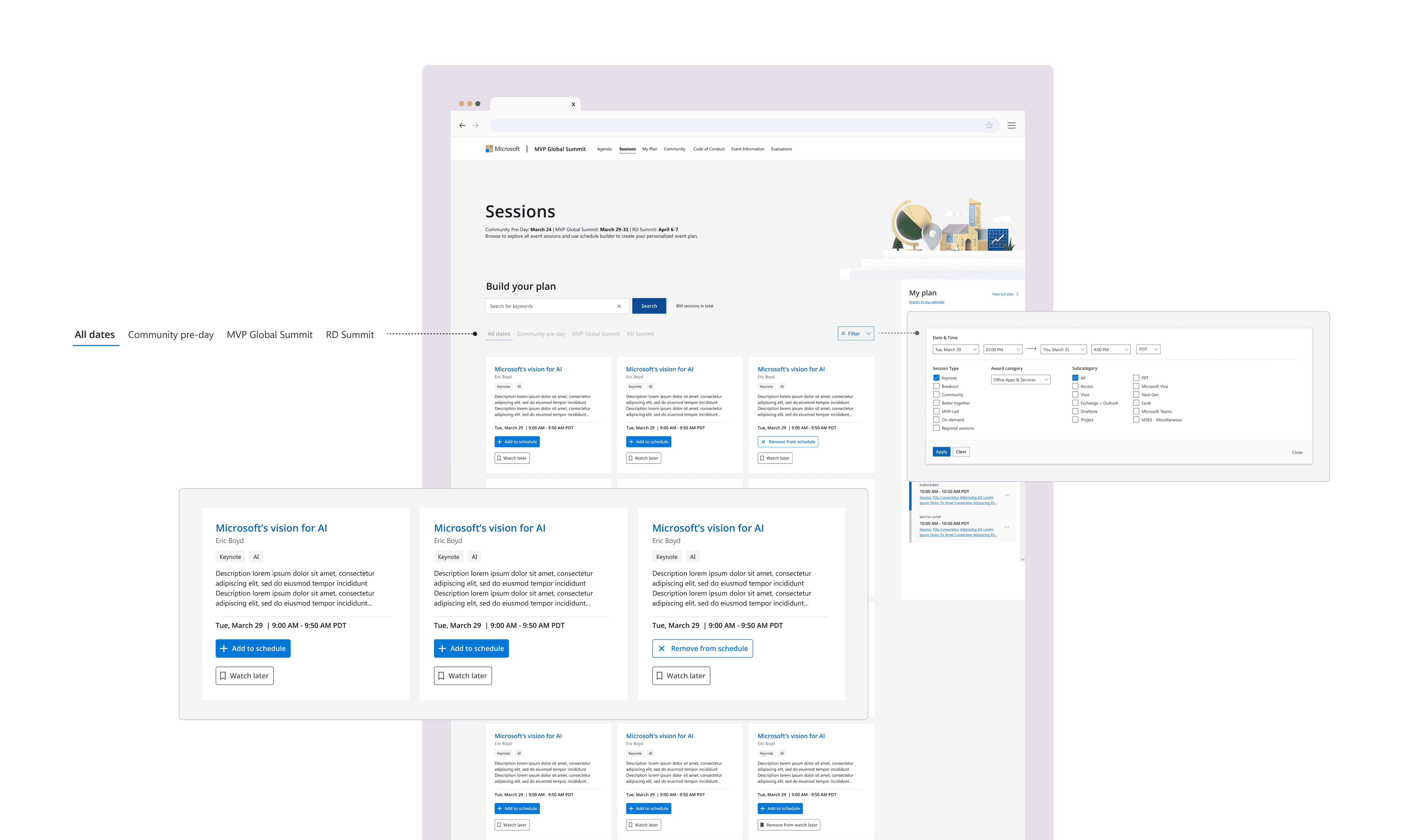 Planning tool supports users planning and managing their schedule for Microsoft annual conference, MVP & RD Summit.