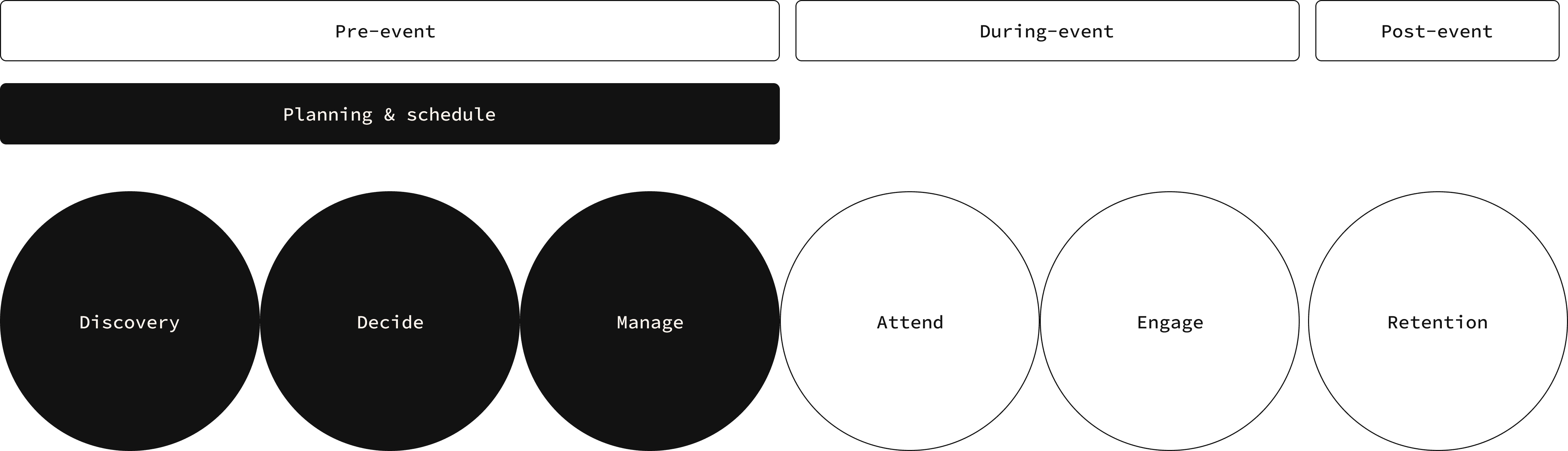 Many attendees joined event with empty schedules. Research revealed that their planning experience was frustrating and incomplete.