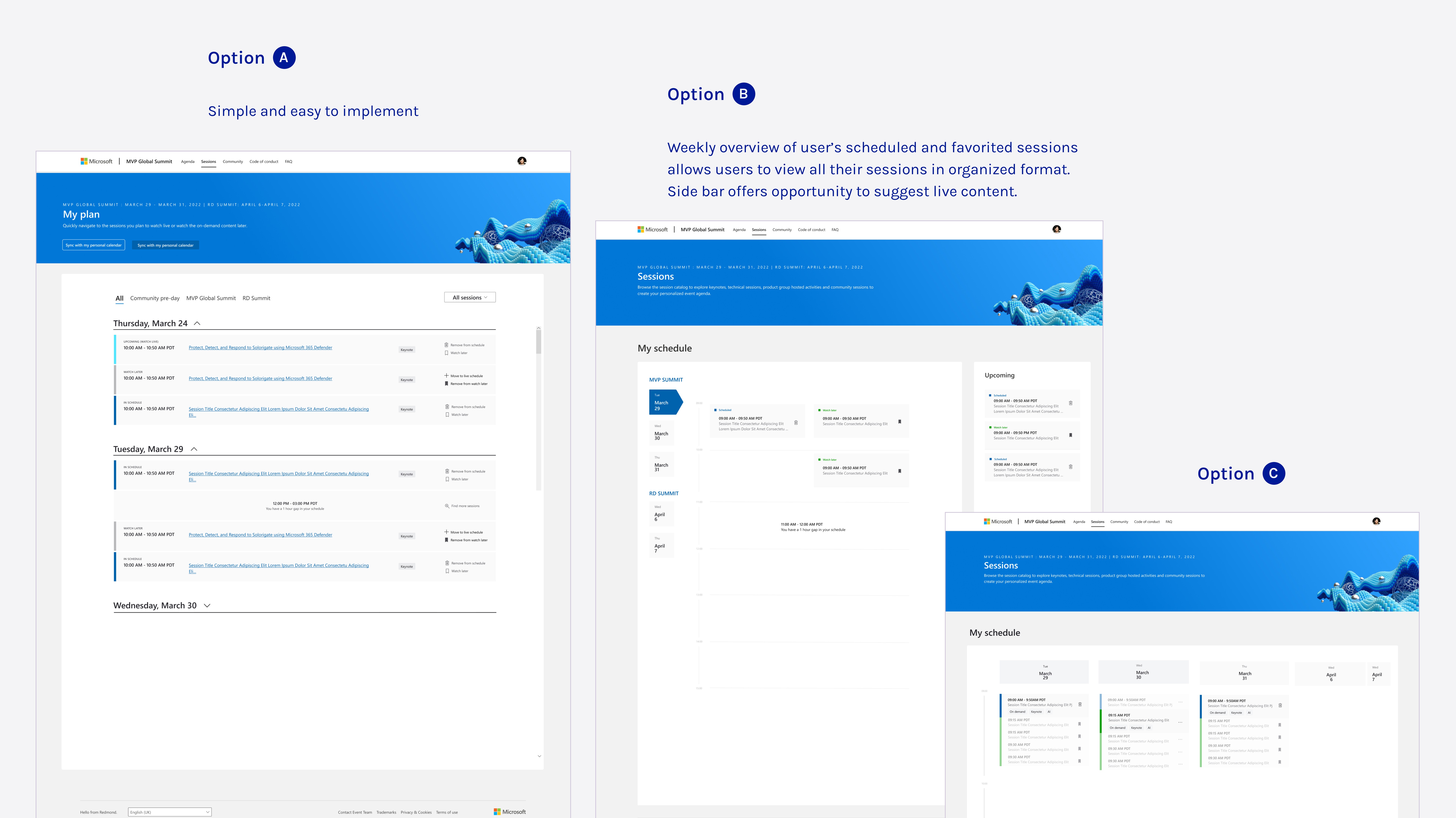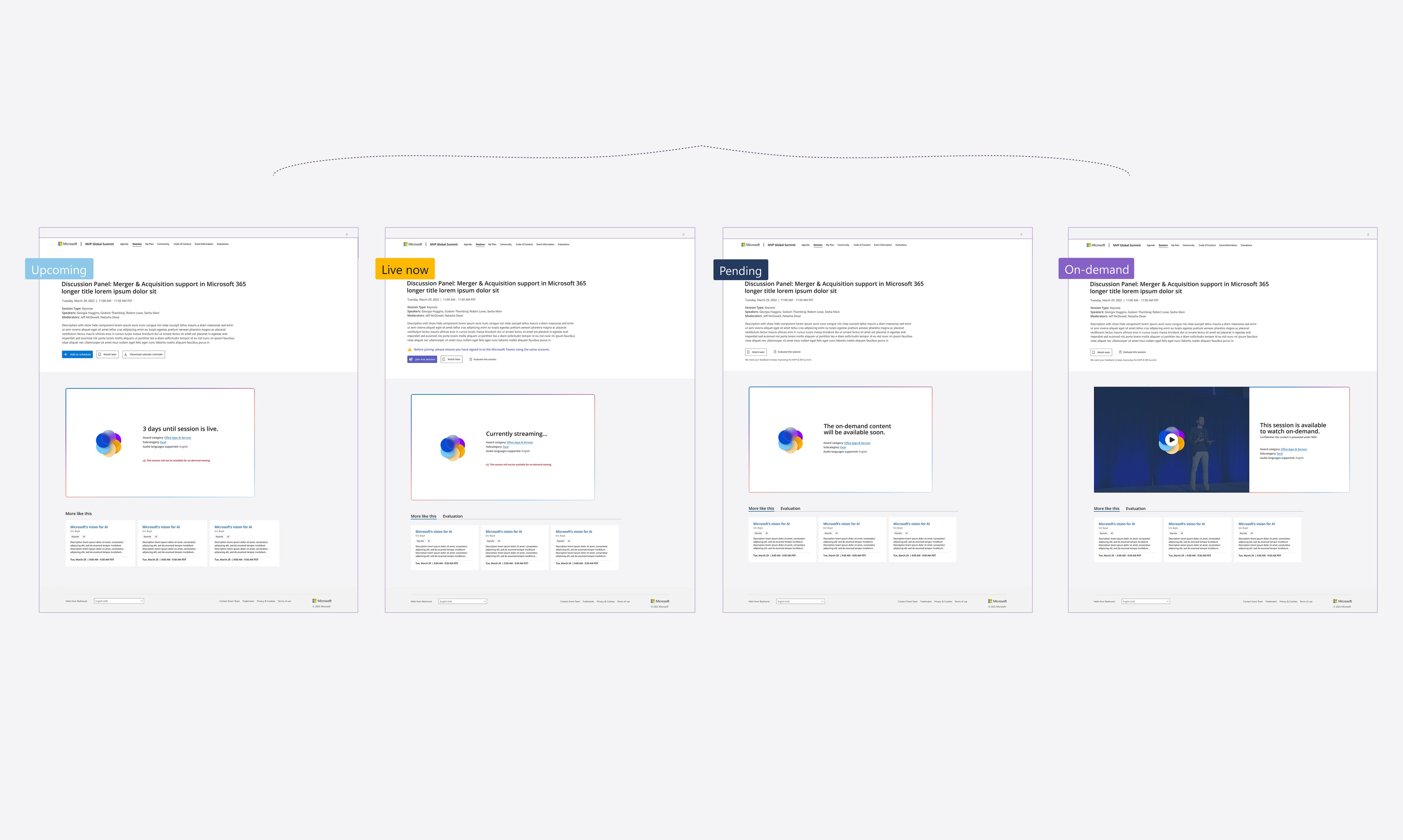 **Due to NDA restrictions, I’m only able to share mockup screens. Real session titles, speaker names, and detailed content have been removed to protect confidential event information.