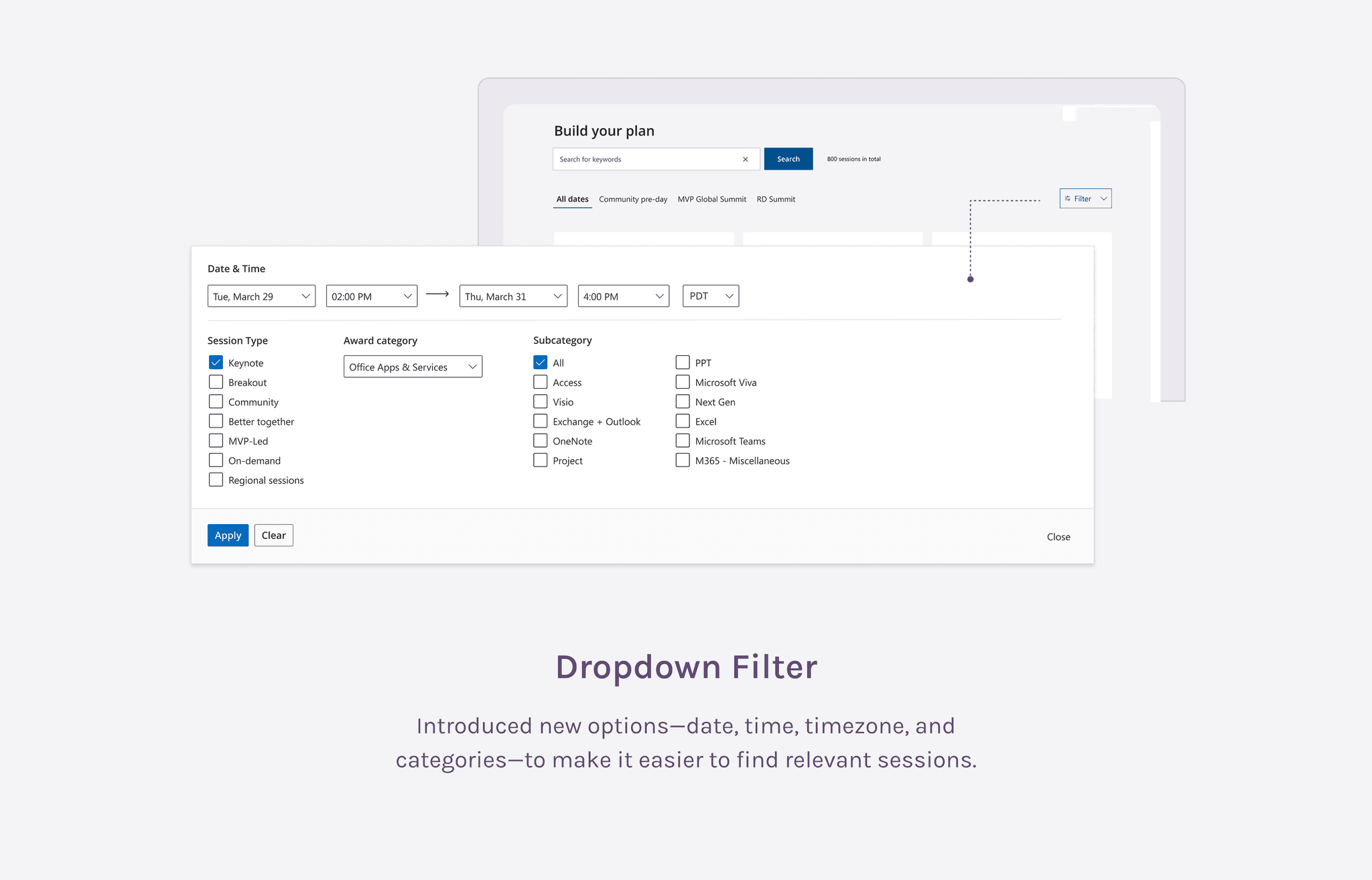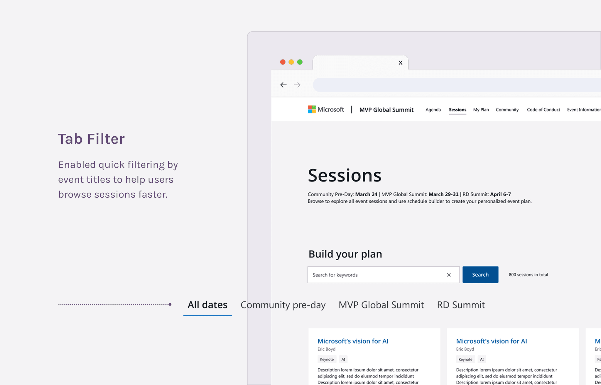 Make it easier for users to find relevant sessions through improved filtering and categorization.