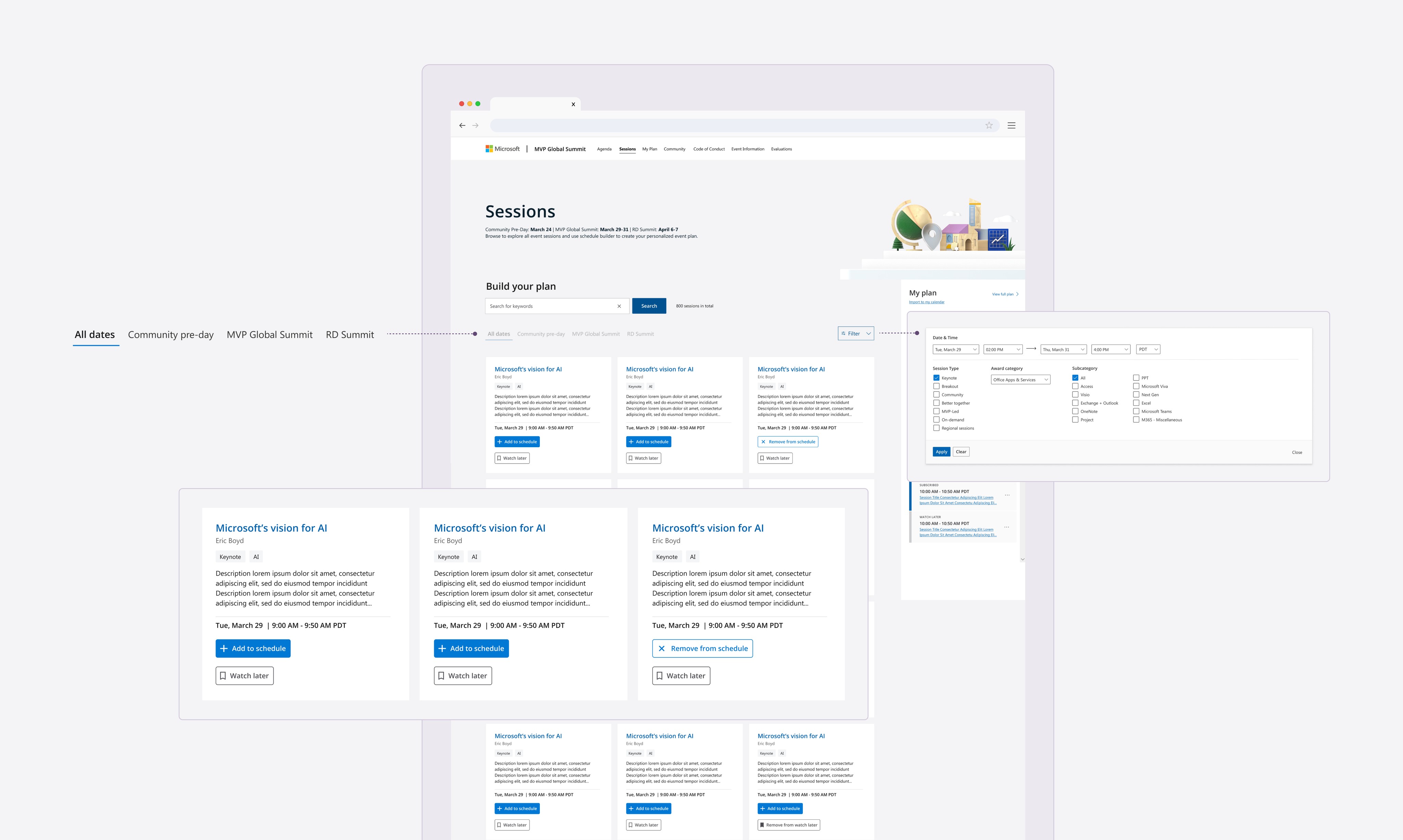 Schedule builder is an event planning tool for Microsoft annual conference, MVP & RD Summit. It helps users to plan and manage their schedule for the event.