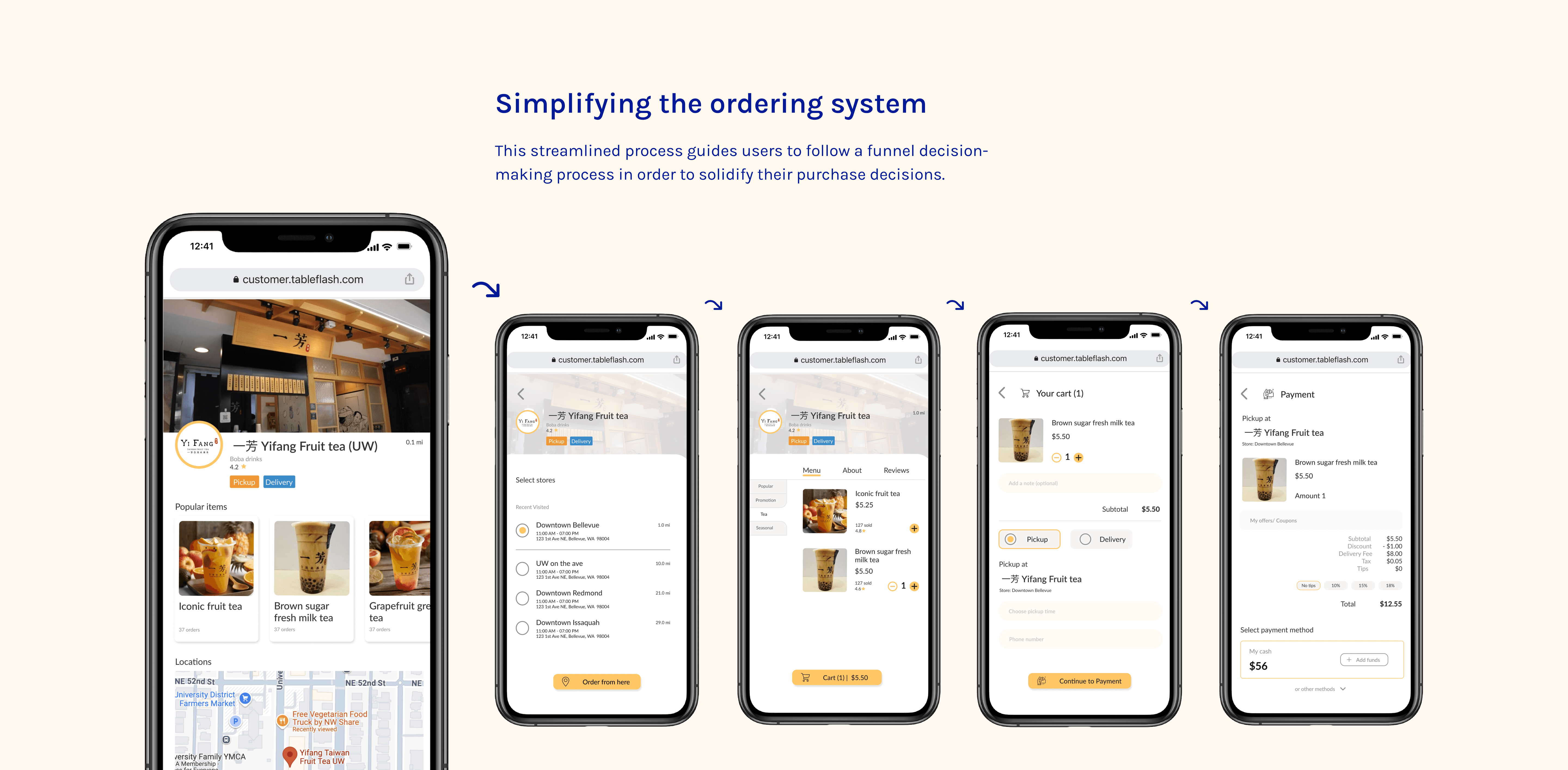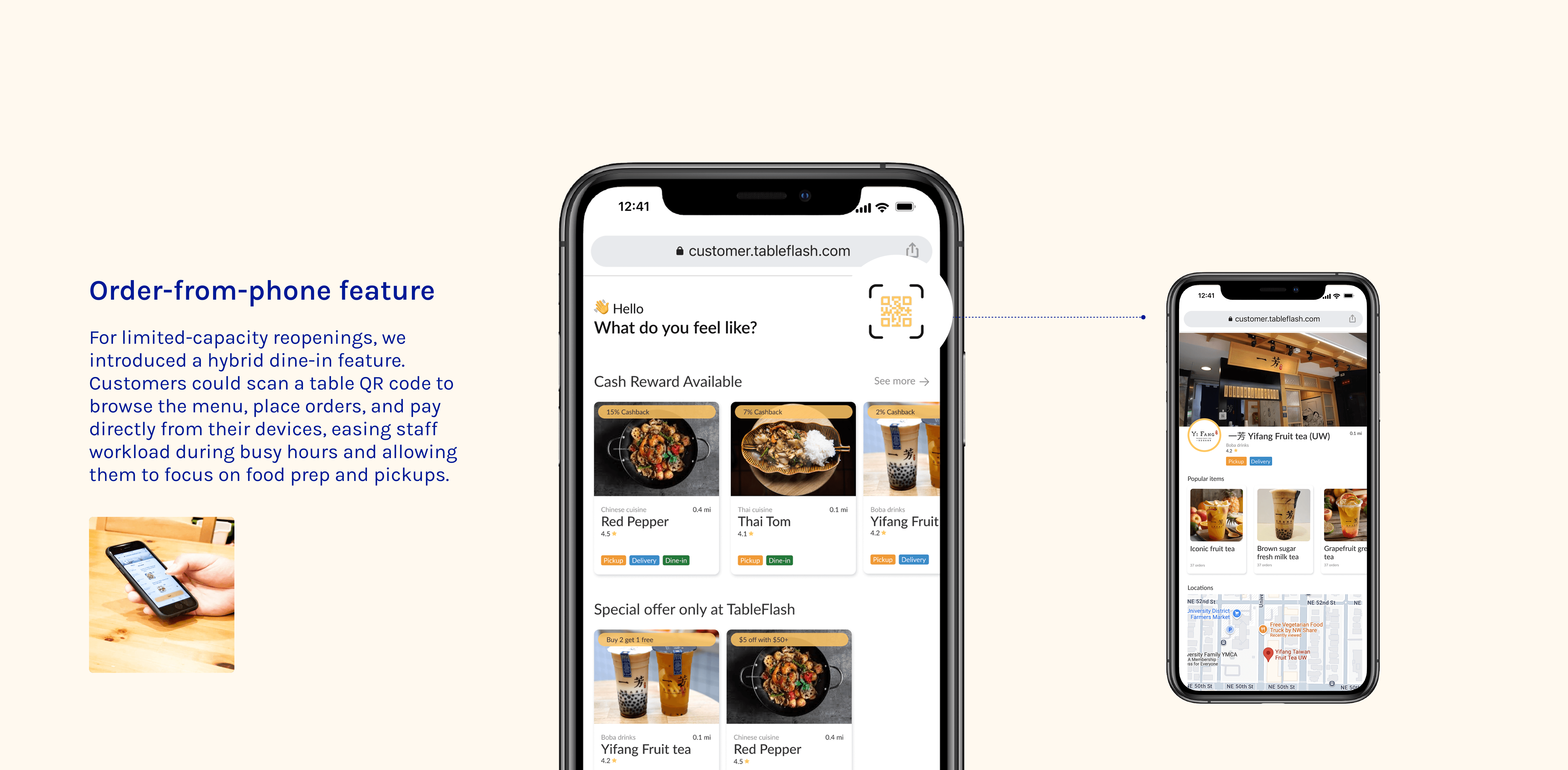 As the first designer at TableFlash, I was tasked with helping these businesses adapt—quickly and effectively. Founders' idea was a QR-code-powered “Order to Go” system that would allow diners to scan a code, place takeout orders, and pick them up without calling restaurants or interacting face to face.
