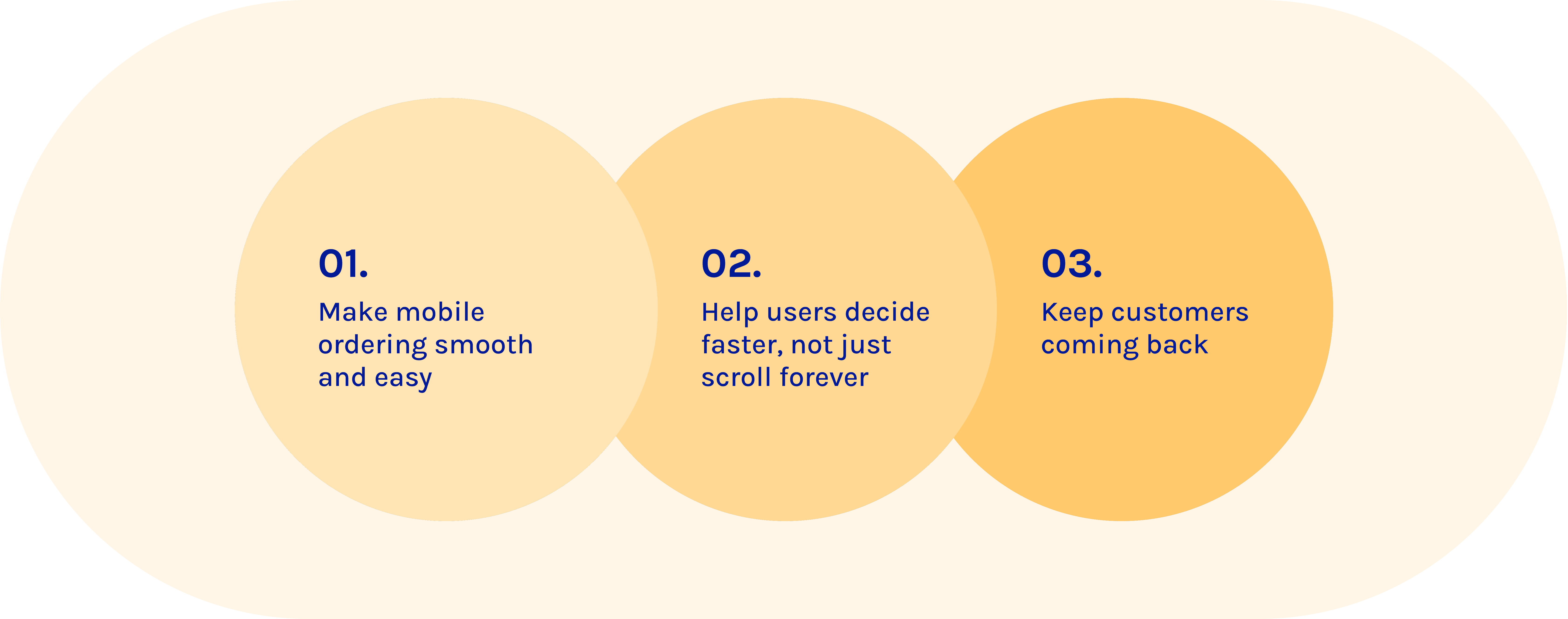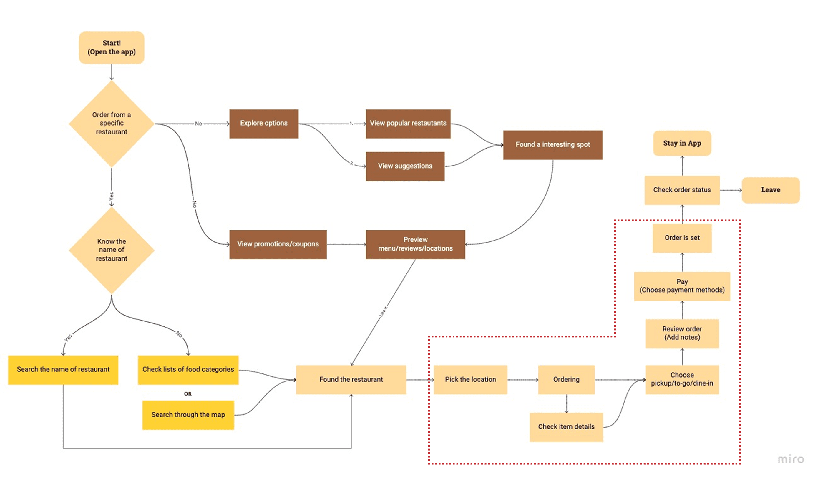To better understand the customer side, I mapped out a mobile ordering flow based on insights from user interviews. This helped visualize how people choose what to eat, what they expect from the experience, and where friction shows up.