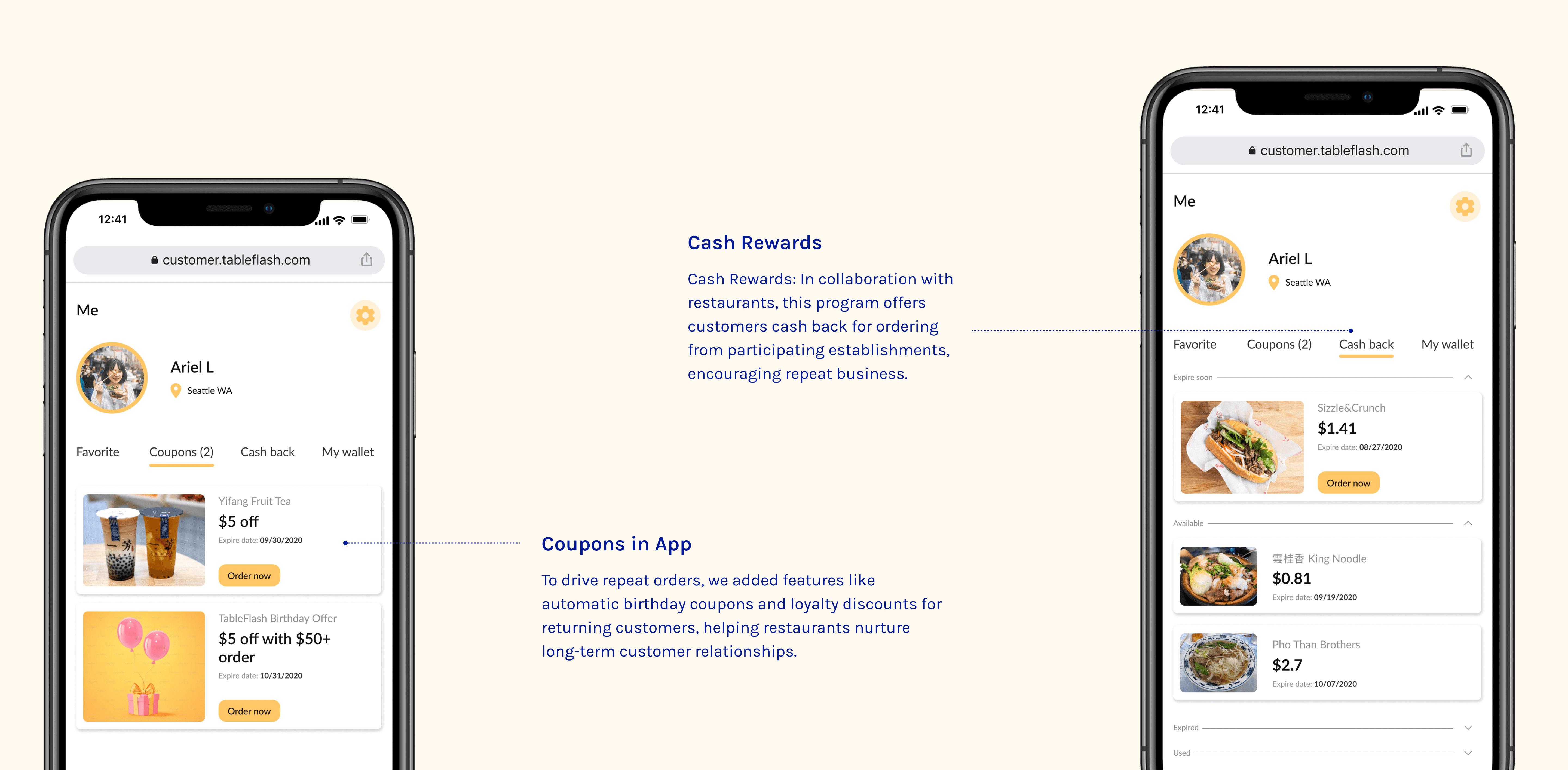 As the first designer at TableFlash, I worked closely with the founders to develop these features, helping restaurants increase orders and stay connected with their customers.